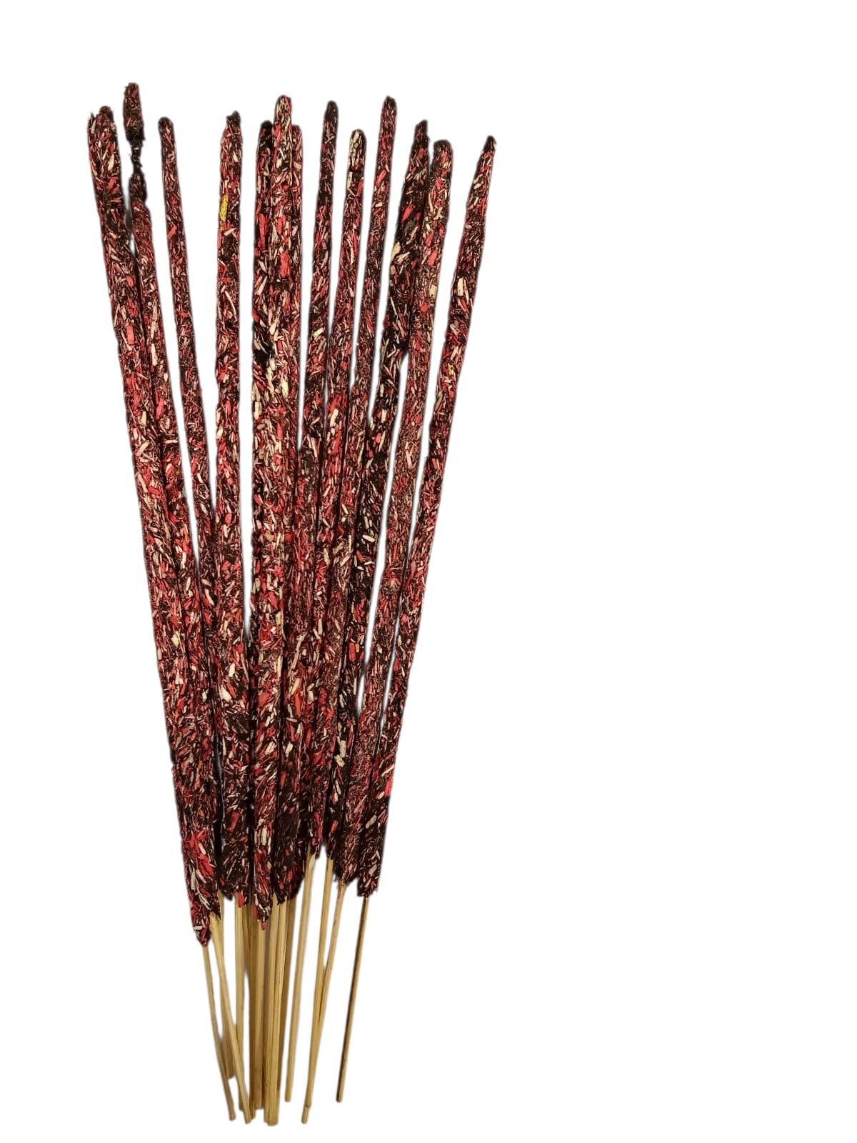 Rosemary incense sticks are aromatic sticks infused with the essential oil or fragrance of Rosemary, a Mediterranean herb known for its fresh, woody, and slightly minty scent. When burned, these incense sticks release a clean, herbal fragrance that is often associated with clarity, purification, and mental stimulation. They are commonly used in homes, meditation spaces, and spiritual practices.